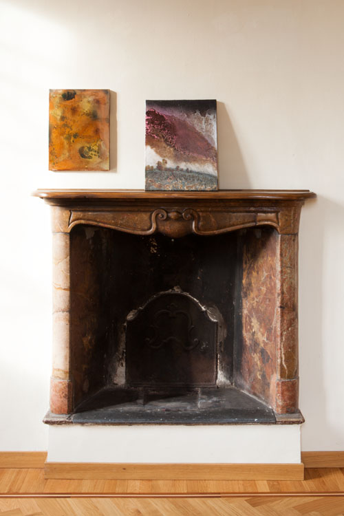 I lavori Senza titolo in mostra sono stati realizzati combinando materiali differenti e danno la sensazione di superfici intaccate da fenomeni organici e agenti chimici che sfuggono alla normale classificazione. Sono una sfida ad abbandonare la posizione statica dello spettatore per guardare l’opera da più punti di vista, nella sua semplice e più pura essenza visibile.