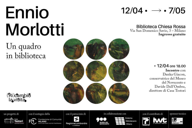 L’iniziativa fa parte del progetto (Ri)cambio la visita che Casa Testori, grazie al sostegno di Fondazione di Comunità Milano, ha promosso per favorire una riattivazione consapevole dei flussi culturali, dando vita a un movimento dal centro alla periferia e viceversa che coinvolge, grazie all’arte del ’900 e del contemporaneo, il mondo delle Biblioteche Comunali, dei Musei cittadini, della scuola e di giovani artisti operanti in città.