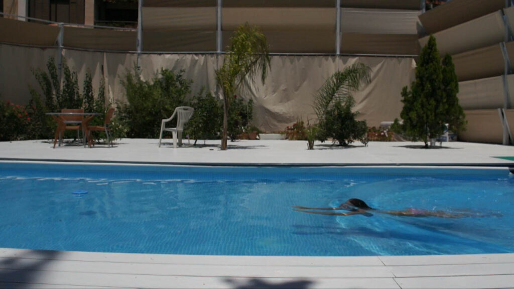 All’estrema destra della casa, Fatima presenta la sua opera più recente: un film dal significativo titolo di L’Ouvert. L’Aperto è lo spazio