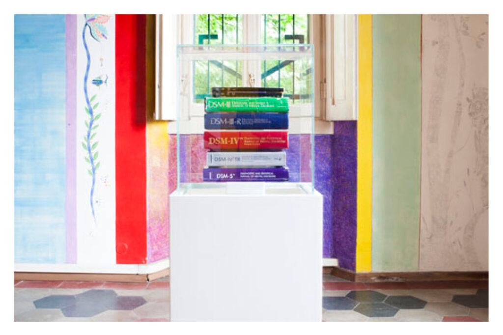 La riflessione sull’arbitrarietà delle catalogazioni scientifiche è particolarmente evidente nel lavoro Leaven (2017) di Fogarolli, composto da una teca contenente i manuali pubblicati