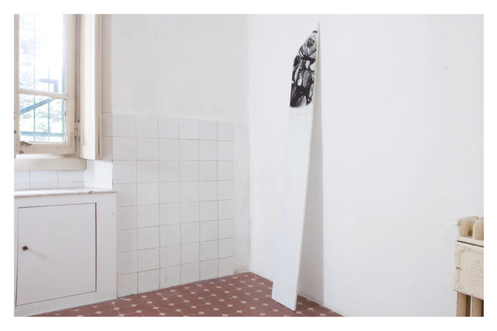 Nel corridoio all’esterno dell’ex cucina è collocato il primo dei due dittici in mostra, appartenente alla serie Remember, Repeat, Rework (2015), realizzati