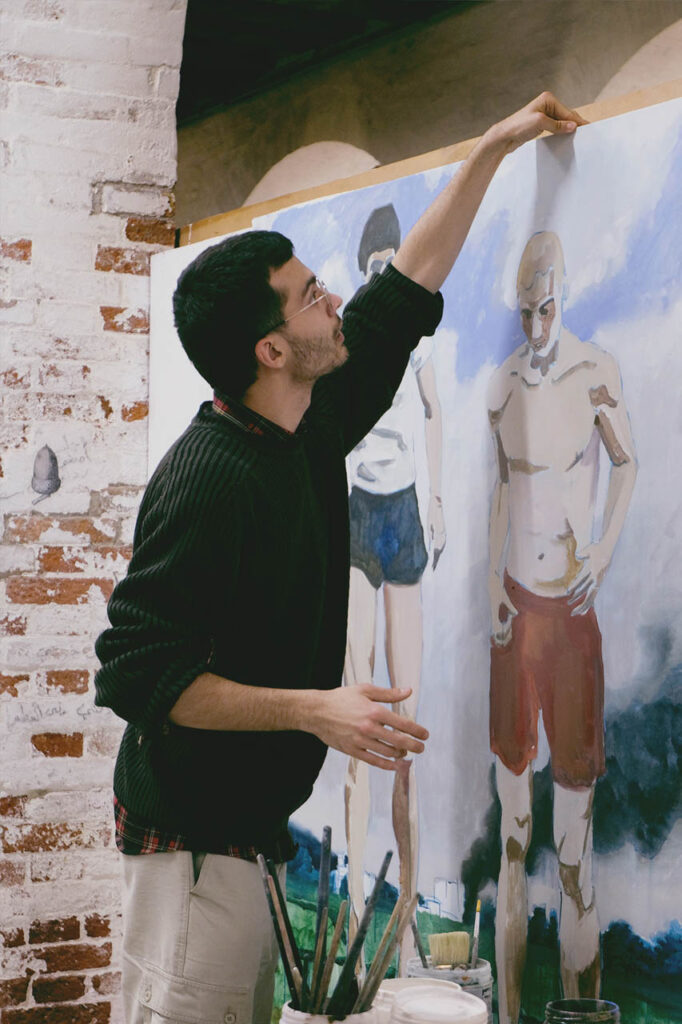 Enrico Loquercio, Non ti preoccupare, c’è il tramonto, 2023, olio su tela, 150×100 cm, courtesy l’artista Enrico Loquercio, Islas, 2024, olio su